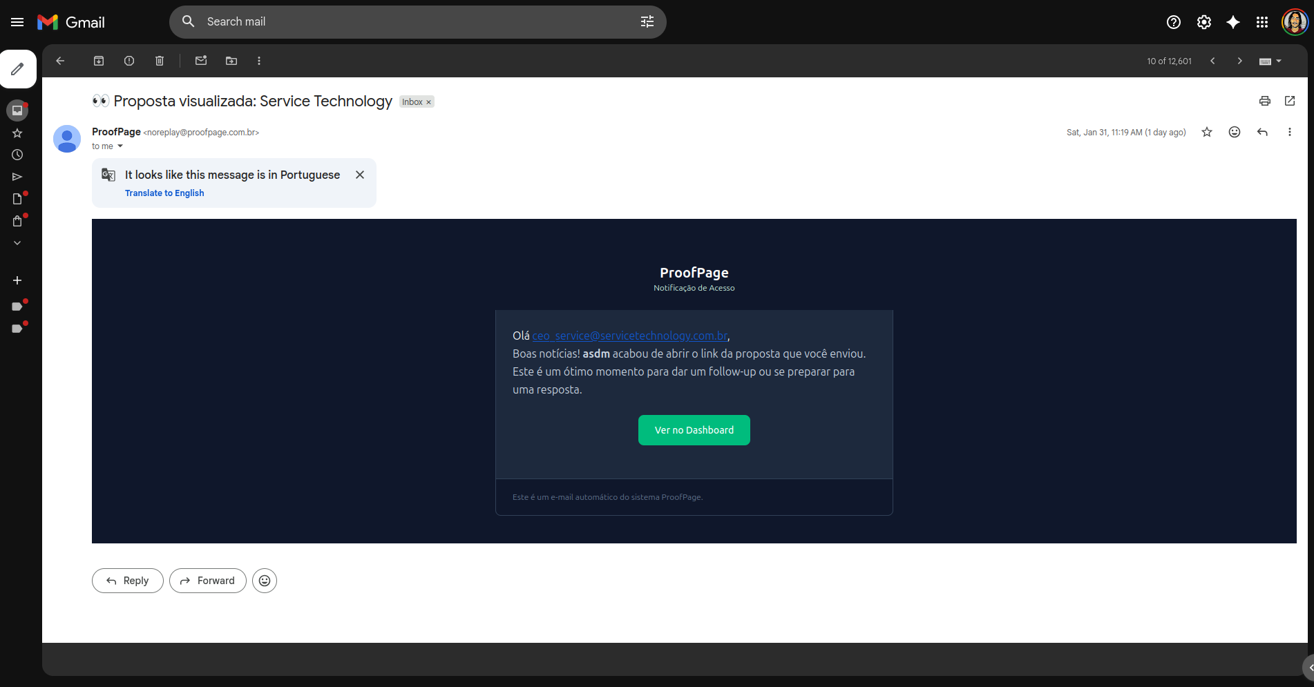 Receba notificacao por email no momento que o cliente abre a proposta. Saiba exatamente o melhor momento para fazer follow-up.